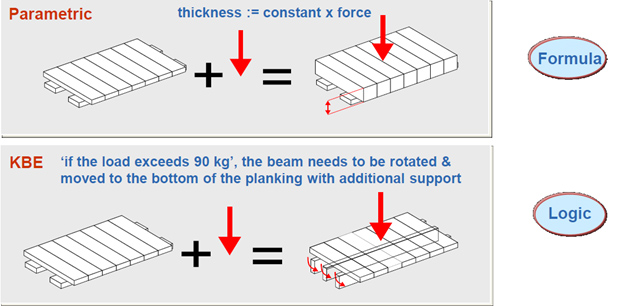 Standard CAD software have parametric facilities, whereby change in parameter will lead to change in dimension of geometry or model. However, Knowledge based Engineering or Rules based Automation goes much beyond that, whereby it becomes possible to capture and implement much more complex rules and logic, like the one shown in above figure.