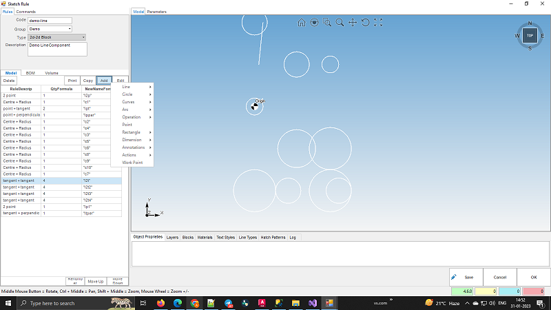 Create geometry on the fly with “Test component” feature – FormulaCAD will instantaneously create geometry in the 2D window as per defined rules