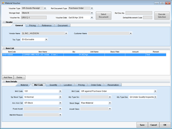 EtomPlan provides for a seamless integration of Quality Management with Sales and Purchase, Inventory Management and Production Management. In the inventory management module, all receipt is moved to “Under Quality Inspection” area. After performing inspections as per the defined plans, a new transfer voucher is passed to transfer the material to “Unrestricted” or “Restricted” area. Follow up actions like notification to vendor via “Material Rejection Note” and/or return or rectification of materials can then be performed. The accounts module provides full visibility over the rejections in a particular invoice to facilitate proper vendor handling.