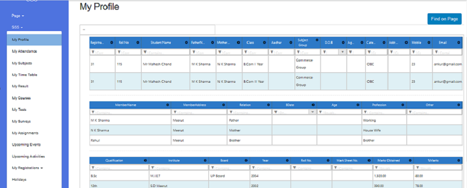 SSS (Student Self Service) is an app which enables users(students) to view their college related details , their attendance, subjects, results, college holidays and events etc.